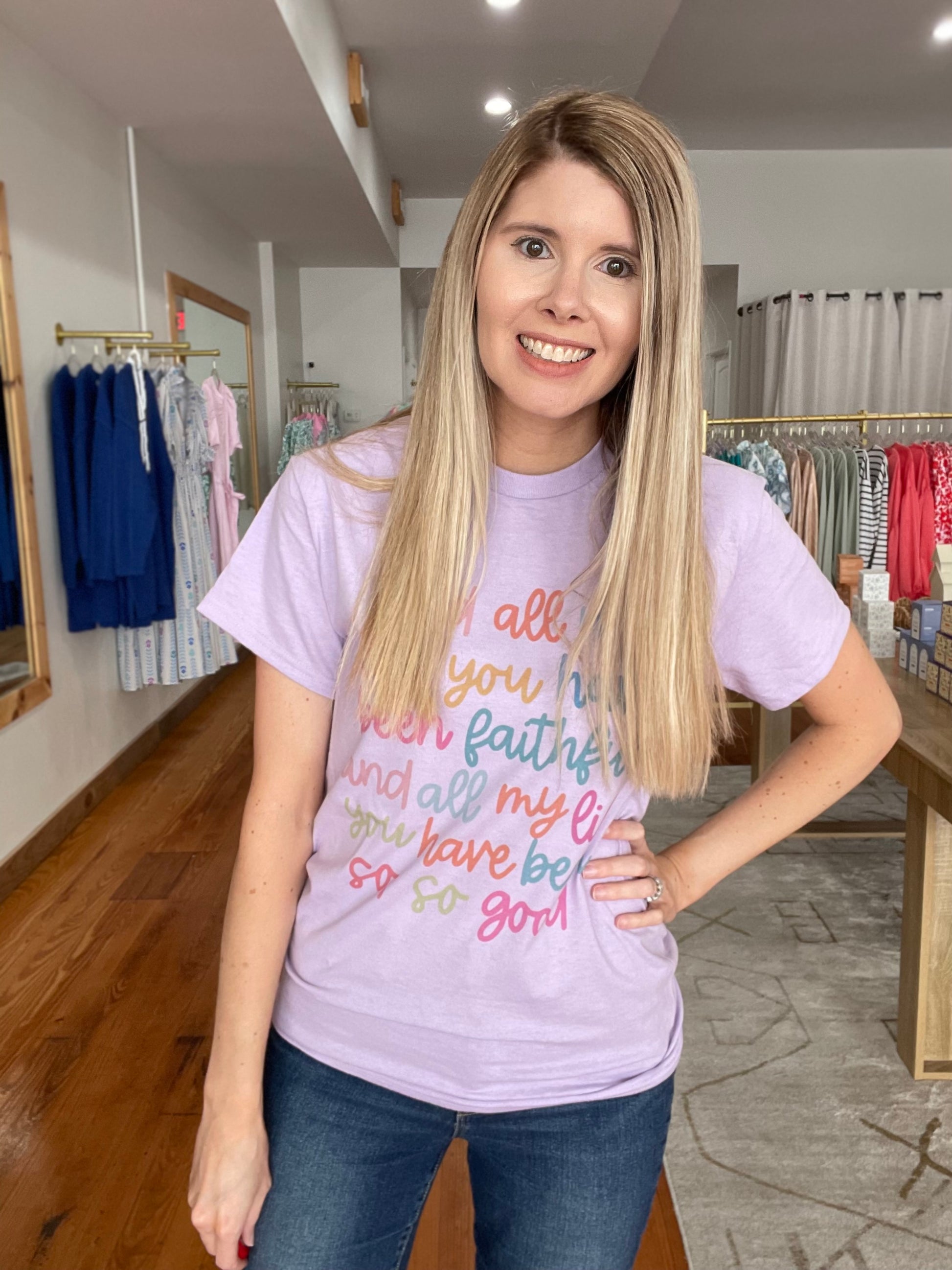 Celebrate enduring faith with a bold, everyday tee printed via sublimation on a Gildan Lilac base. This unisex fit shirt delivers a soft, durable feel with a classic silhouette, perfect for expressing your faith with style.