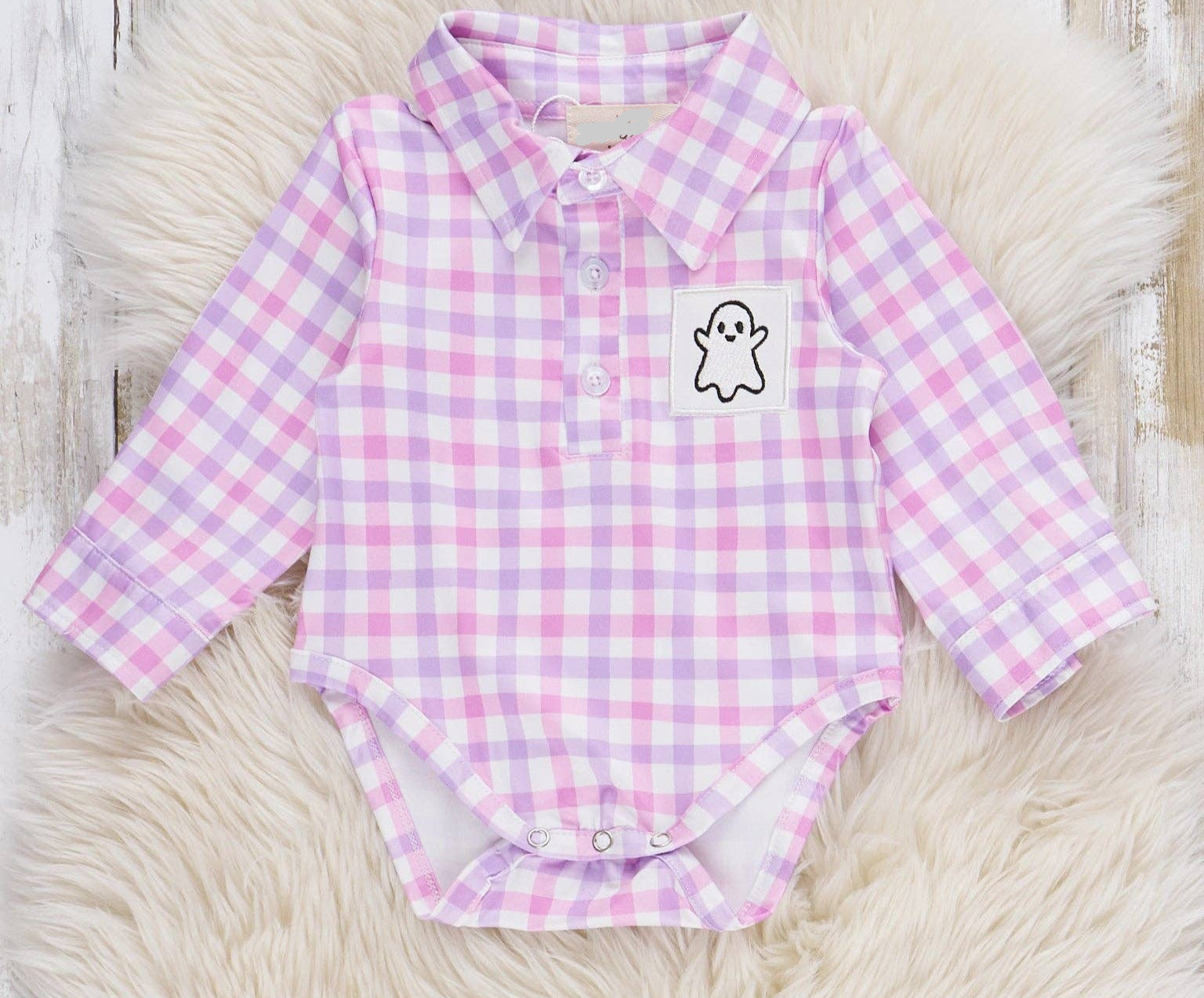 Dress your little pumpkin in Halloween-ready charm with the Ghostly Greetings Smocked Plaid Bubble Romper from Marie Nicole Clothing. Perfect for October, this adorable one-piece features fun, ghostly embroidery that adds playful spookiness to playtime, photos, and trick-or-treat adventures.