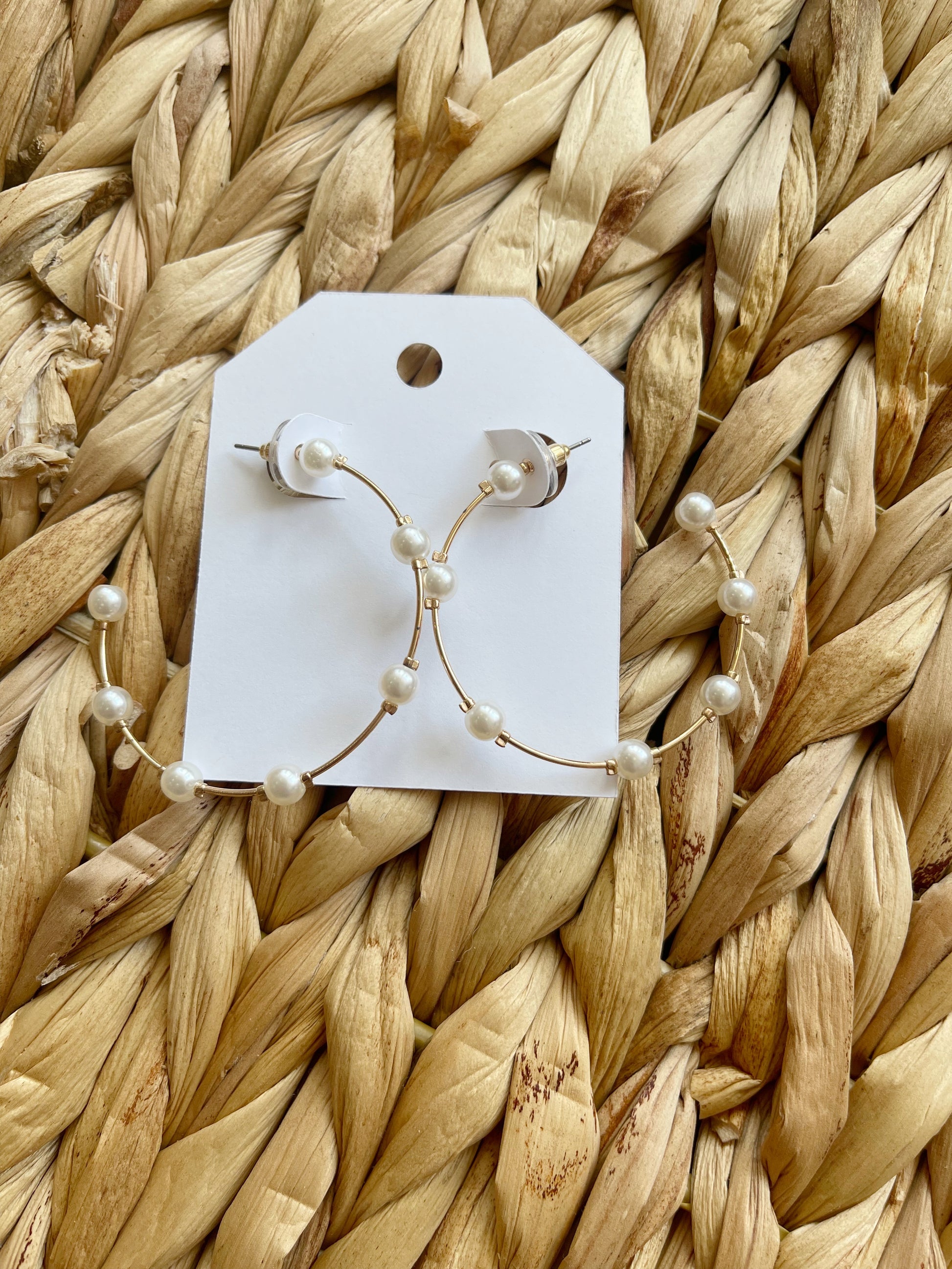 Elevate your look with a classic-meets-contemporary touch. Gold Pearl Hoops pair lustrous pearls with a sleek gold-tone finish, delivering a silhouette that's at once timeless and on-trend. Sized at 48mm, these hoops make a bold statement without overpowering your outfit.