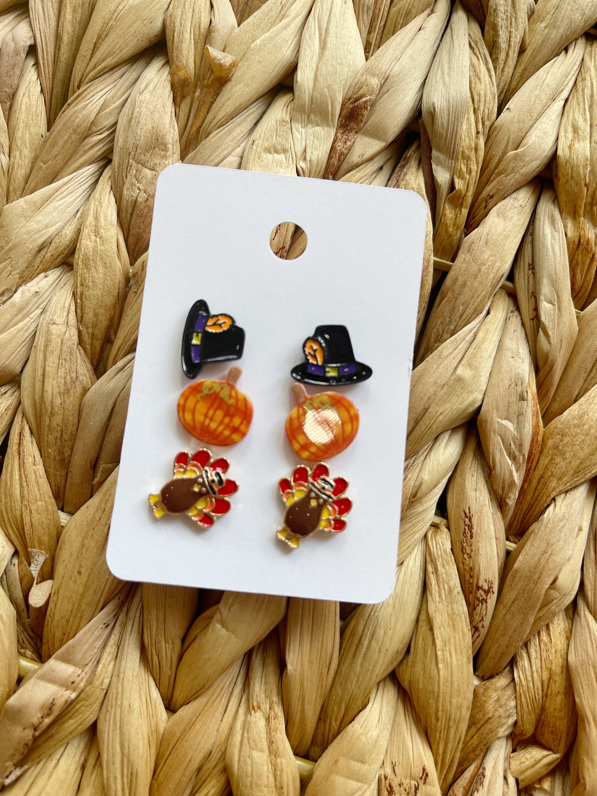 Thanksgiving Trio: Hypoallergenic Acetate Post Earrings — 3 Piece Set